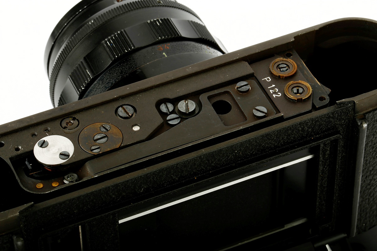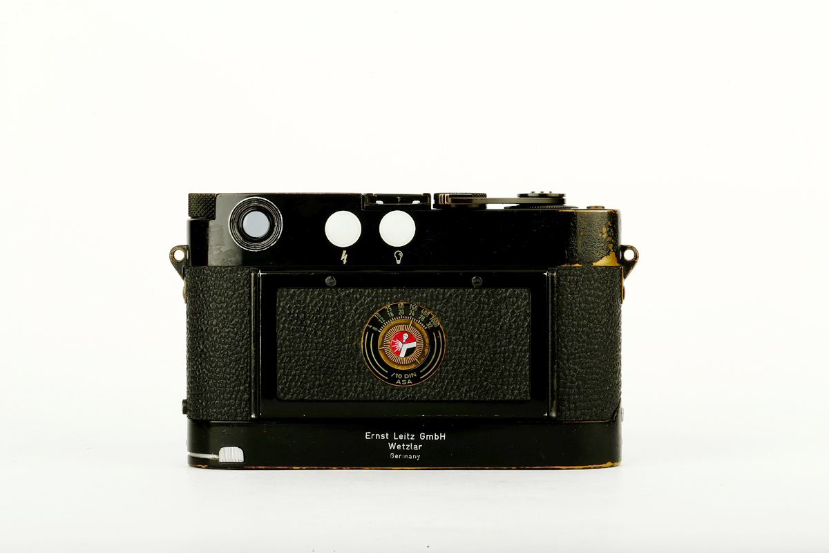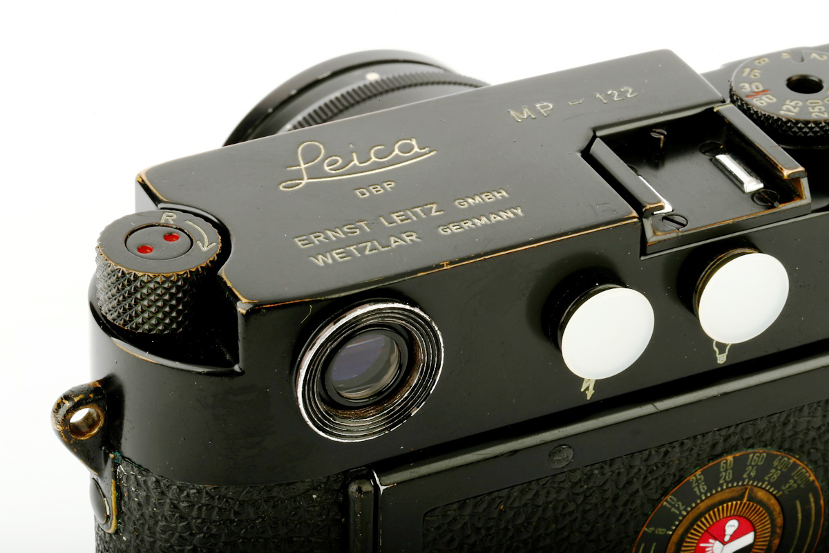 此乃早期原裝黑漆MP相機及Summilux-M 1.4/50mm鏡頭 (#1703812),此套機曾被刊登於德國徠卡權威雜誌 《VIDOM》 101 06/2011 期中的P.26-55及封底中。當中介紹早期MP的特別之處,並以此機作為鑒定藍本,與M2及M3作比較; 記錄的圖片及資料甚為豐富及詳盡,篇幅長達15頁。MP黑漆只有138台左右,機身號碼由MP-013至MP-150 (可參閱James Lager Vol.I p.193)。此機更是早期的油質黑漆相機,比後期的水質漆更為罕見珍貴。此機機底號碼與機身相同,配有過片器、包裝盒、皮套、鏡頭前蓋及《VIDOM》 101期。此套機成色在MP黑漆相機中可說是上佳之選,而且可在138台MP中被挑選刊登於《VIDOM》中,無疑是十分難得,絕對是罕見的收藏品。