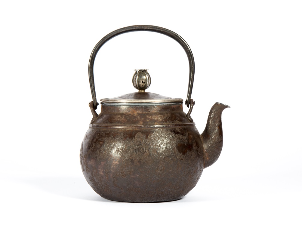 鐵包銀是一種非常特殊及高超的技法:通體以鐵覆裹,在銀的外層上打上鐵。將銀及鐵完美結合起來,同時還要考慮銀、鐵兩種不同物料熱脹冷縮的問題,這種工藝只有日本極少數釜師才能做到。