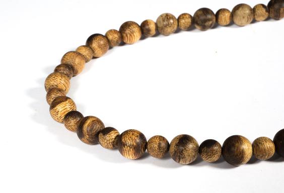 此品為同料所裁,出自上等奇楠,顆粒大小相隔,頗見匠心。細觀其肌理,見顆粒色澤分佈平均,油脂於毛孔滲出,聞之馥郁自然,穿透力十足,直入鼻腔良久不散,舌尖漸覺辛麻,暢快愉悅。自古奇楠就一片萬金,如此奇楠頸錬更是寸金寸香,更能凸顯優雅氣質。