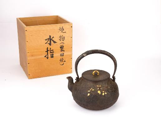龍文堂造 金銀象嵌唐草紋鐵壺