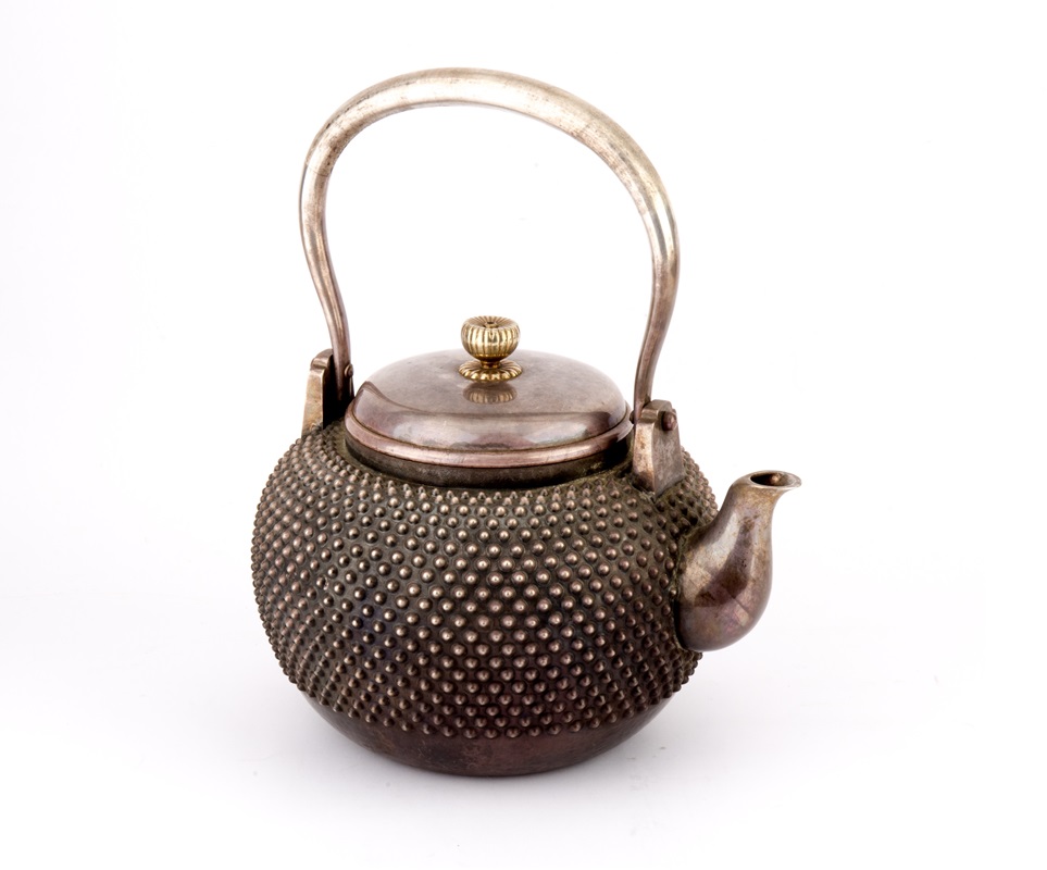 底款「純銀」。共箱,箱面款「純銀製湯沸」。