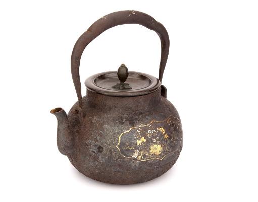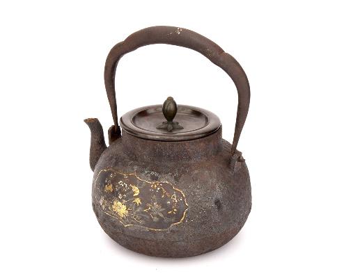 金壽堂造 嵌金銀花鳥紋鐵壺