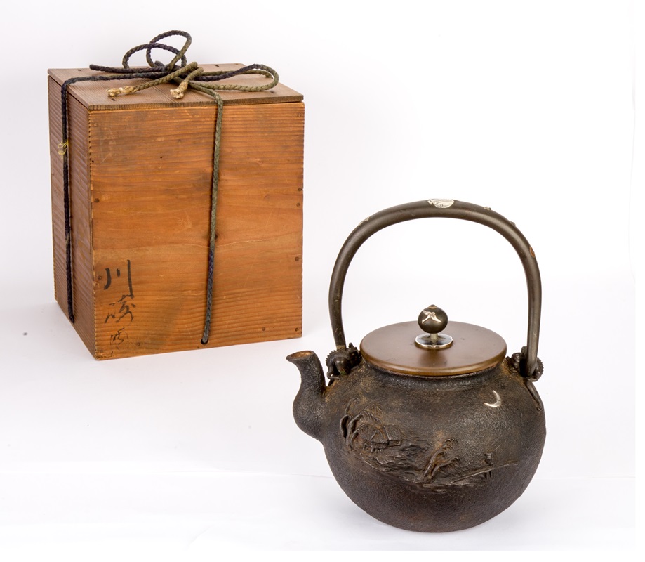 龍文堂造 嵌金銀月花紋鐵壺