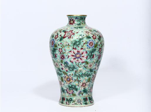 綠地纏枝寶相花觀音瓶 底款「雍正年製」